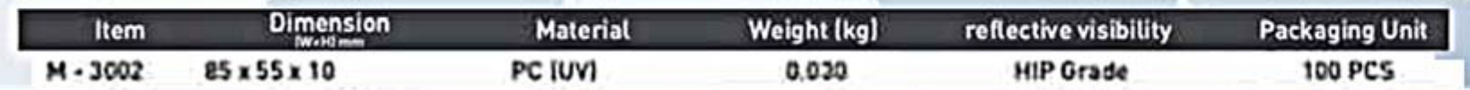 این محصول دارای شبرنگ پریزماتیک ۱۰ ساله ORAFOL آلمان بوده و در برابر اشعه UV، فشار و ضربه مقاومت بالایی دارد. همچنین با قابلیت تمیزشوندگی عالی و نصب آسان با چسب اپوکسی، برای نصب بر روی جداول بتنی خیابانها، پلها و محوطههای شهری بسیار مناسب است.